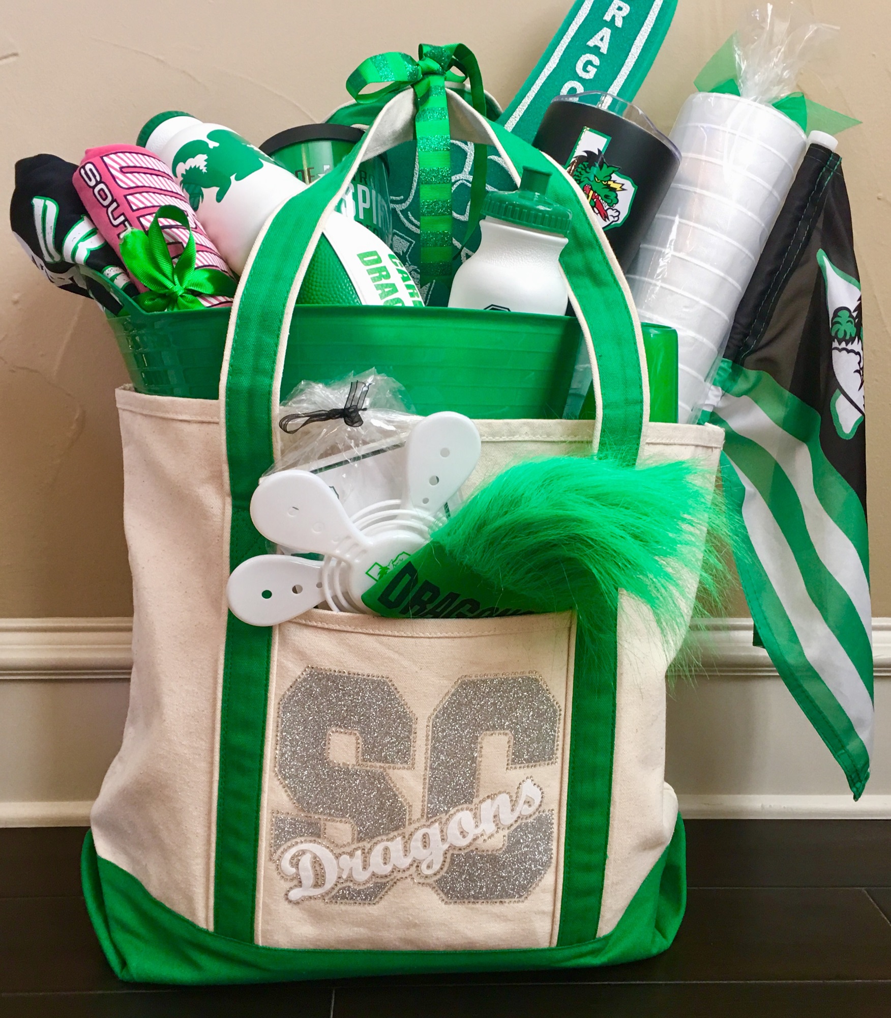 Get ready to cheer on your Carroll Dragons with this Dragon tote bag filled with spirit wear and tailgate gear! Includes